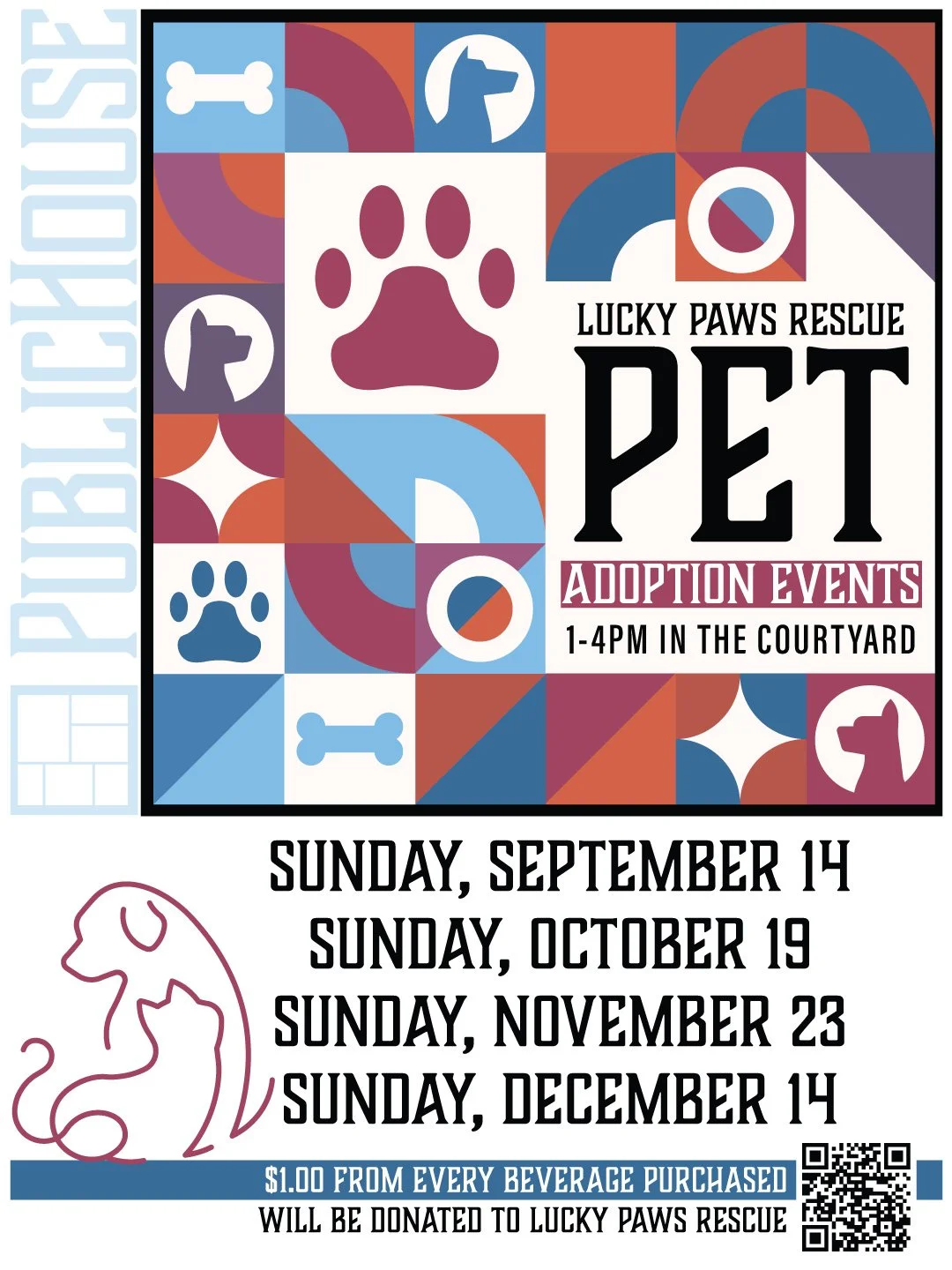 We’ll be donating $1.00 for every beverage sold to support this amazing organization, and… EVERY pet that is adopted will take home a PublicHouse toy.